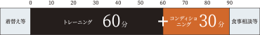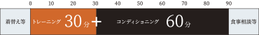 短期間で明確な目標をもってダイエットに取り組むAさんの為に、トレーナーが導き出した時間配分は60分のトレーニングと30分のコンディショニングでした。